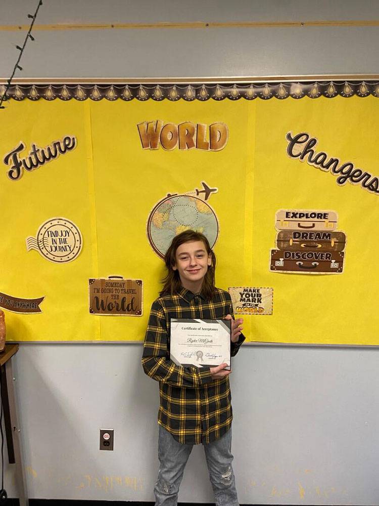 Congratulations Ryder McGrath, a student at Preston Area School in Lakewood, PA is the proud recipient of the Certificate of Acceptance into the Aviation Program at Wallenpaupack Area High School. Ryder is the first and only student in Wayne Highlands School District to ever be accepted into this program. [Contributed Photo]