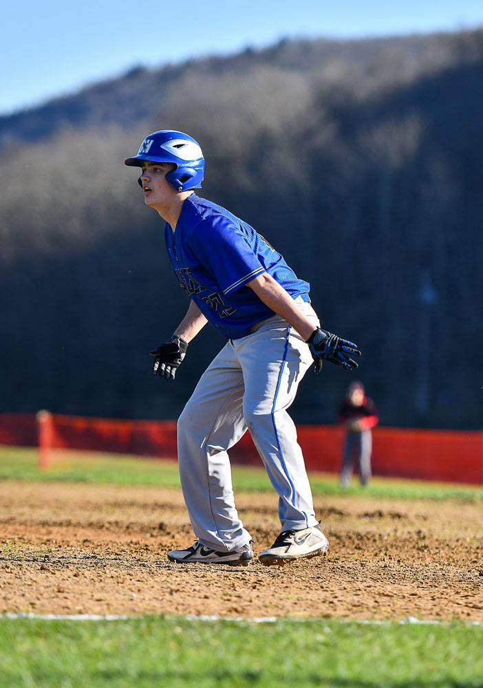 Evan Persbacker leads-off first against Afton on Monday, April 18. [photo by C. Ray]
