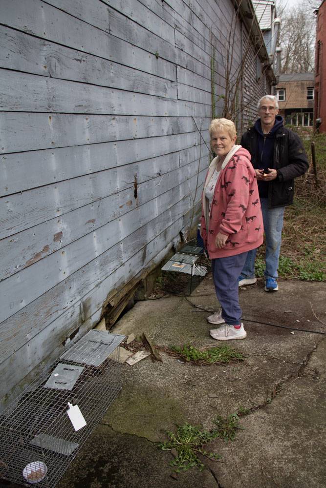 Cat Trap! Members of the Hancock Cat Care group set traps around the Village of Hancock on the evening of Wednesday, April 17, 2024.